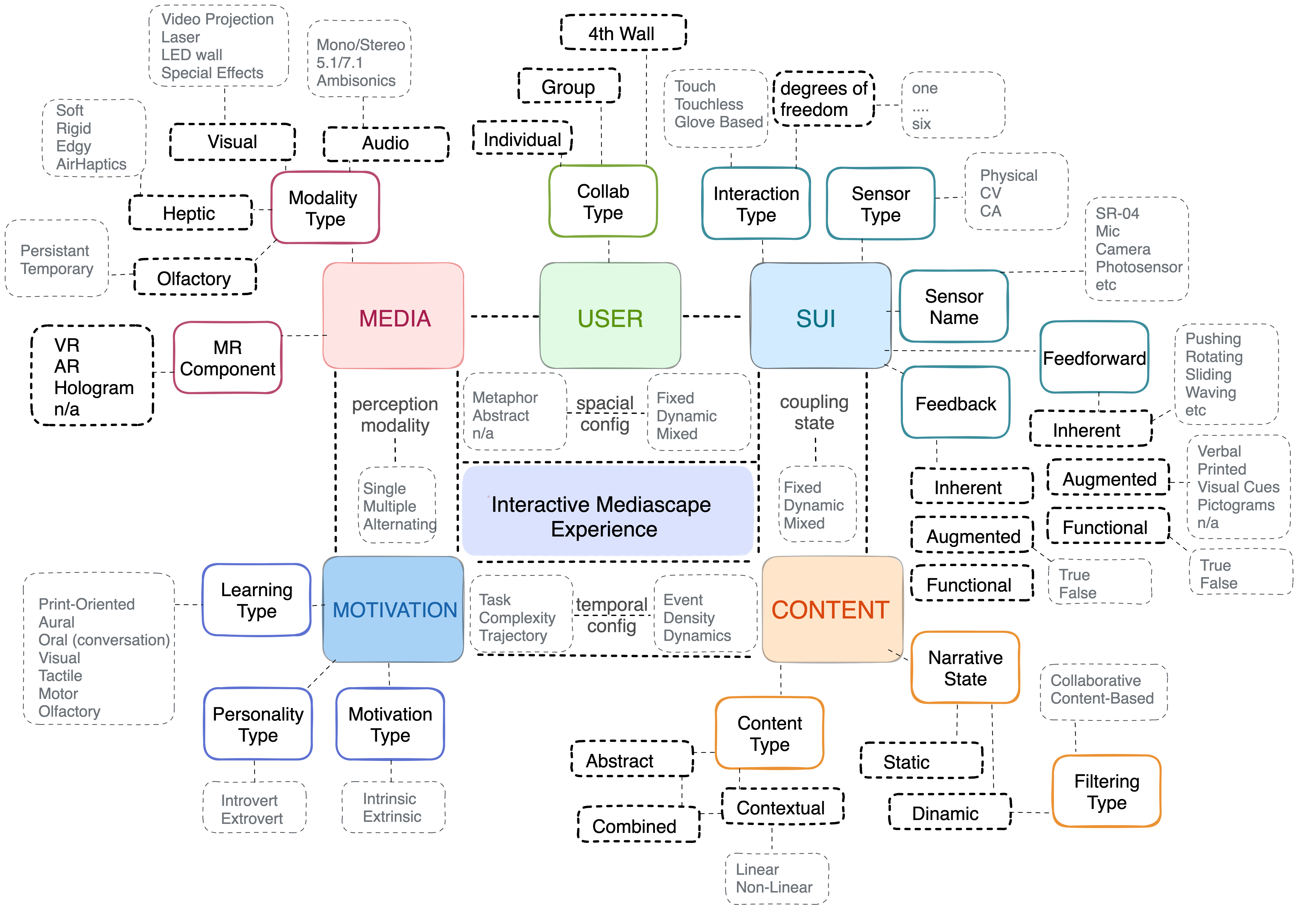 DETAILED STRUCTURE of Interactive Mediascape Ontology. It outlines connections between various elements which comprise Interctive Mediascape Experience.